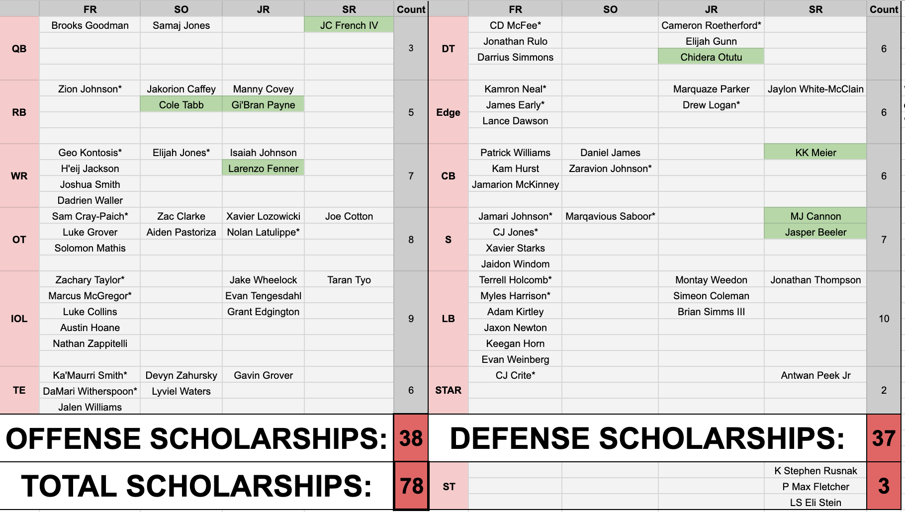 Analysis: Cincy has 5 RB now and all 5 have at least 2 years of eligibility remaining and all 5 are also trusted by the staff to compete for snaps next season. There is currently no scholarship RB on the roster who can’t win RB1 or RB2 job next season.